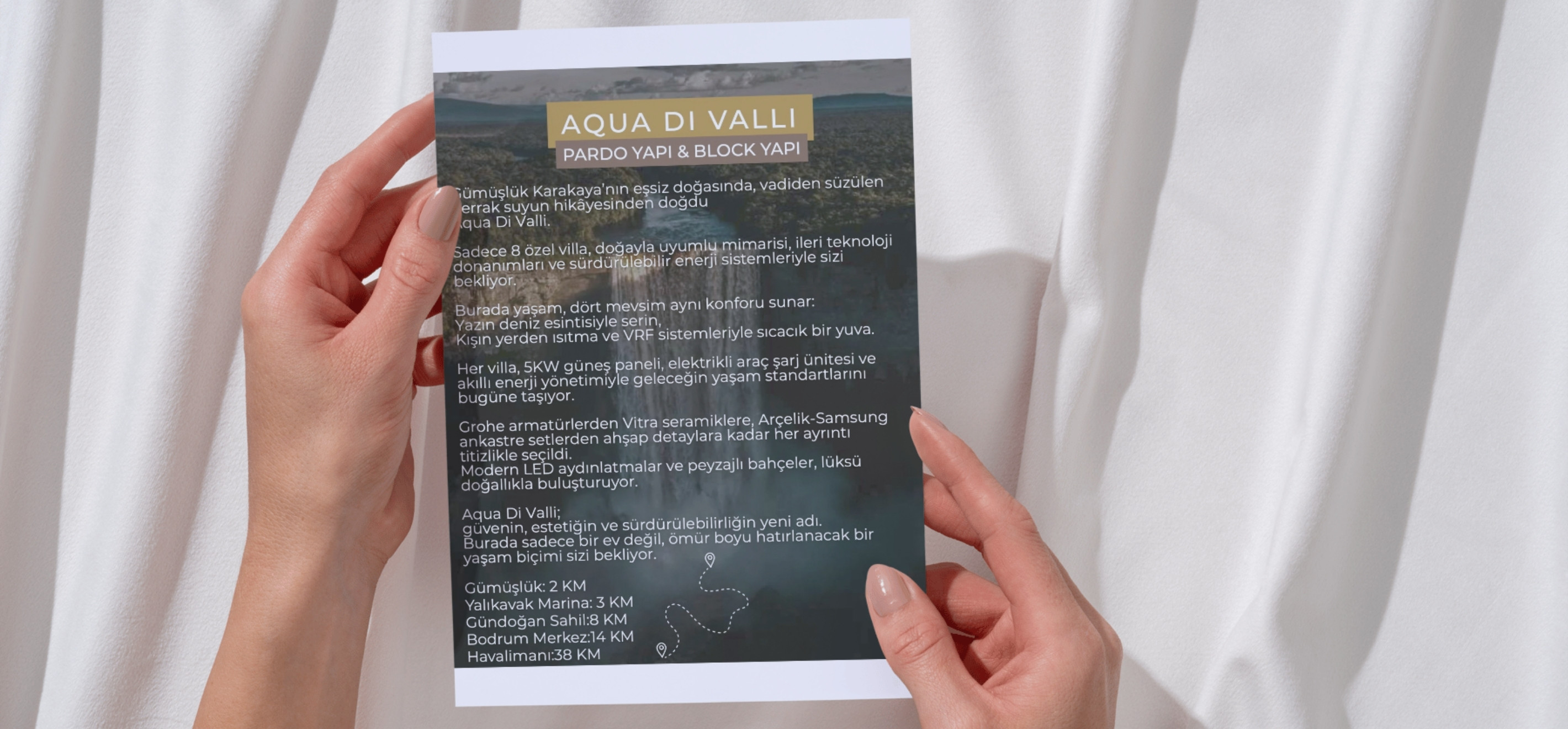 Aqua Di Valli’nin seçkin mimarisini, doğal dokusunu ve incelikle tasarlanan yaşam alanlarını keşfedin.